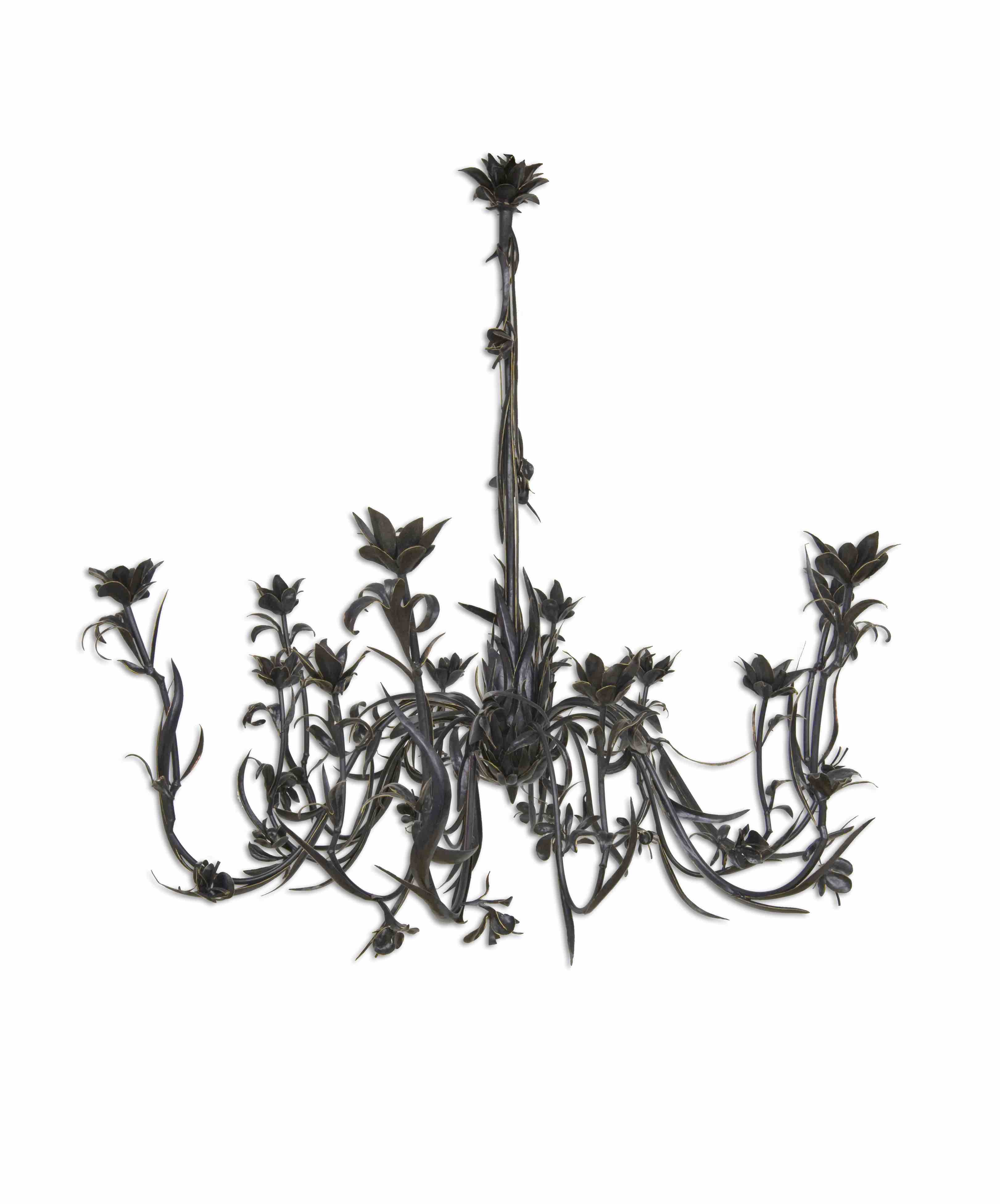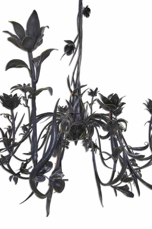 Dimensions: 96” x 84”Materials: 1,000 hammered steel pieces with black bronze leaf and 24k gold leaf edges