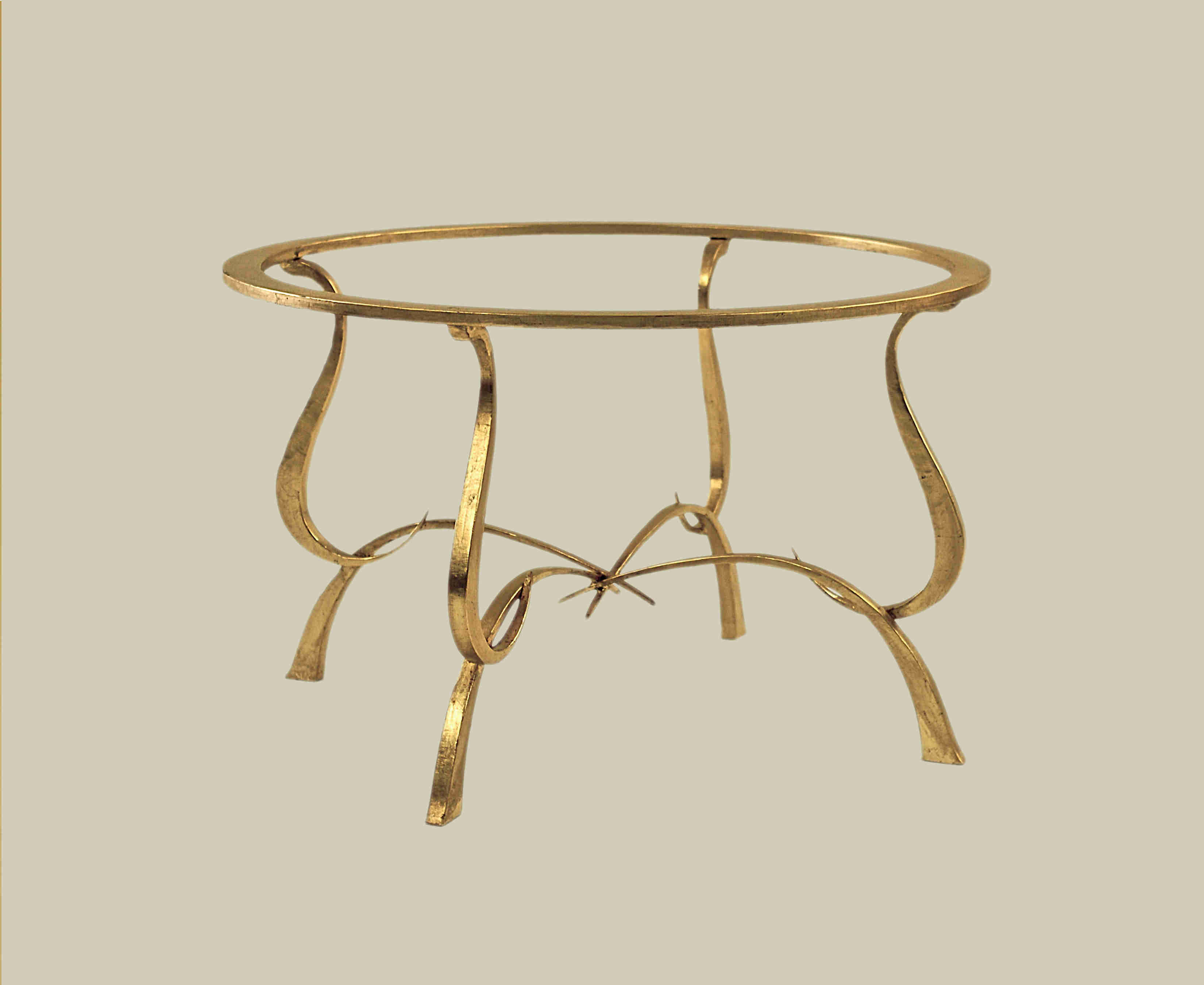 Measurements: 28'D, 30"D, 36"D, 40"D, 46" x 18", 36" x 25", 72" x 25"Steel with 24k. gold leaf and 3/4 sapphire glass