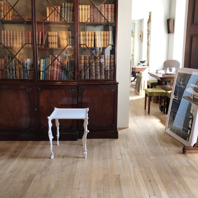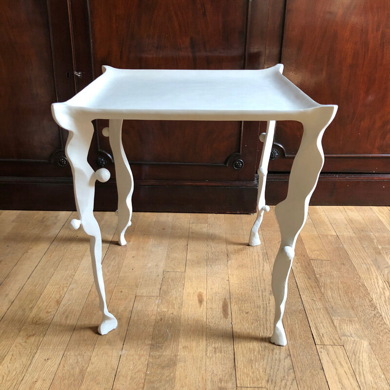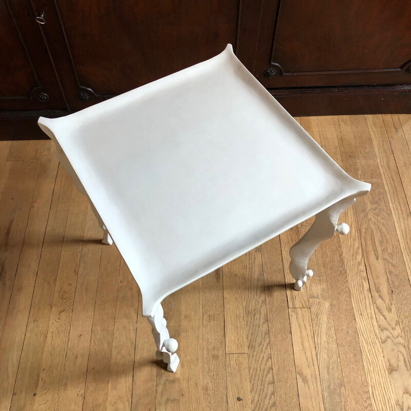 Measurements: 19.5" x 18"Gessoed steel bench or low table