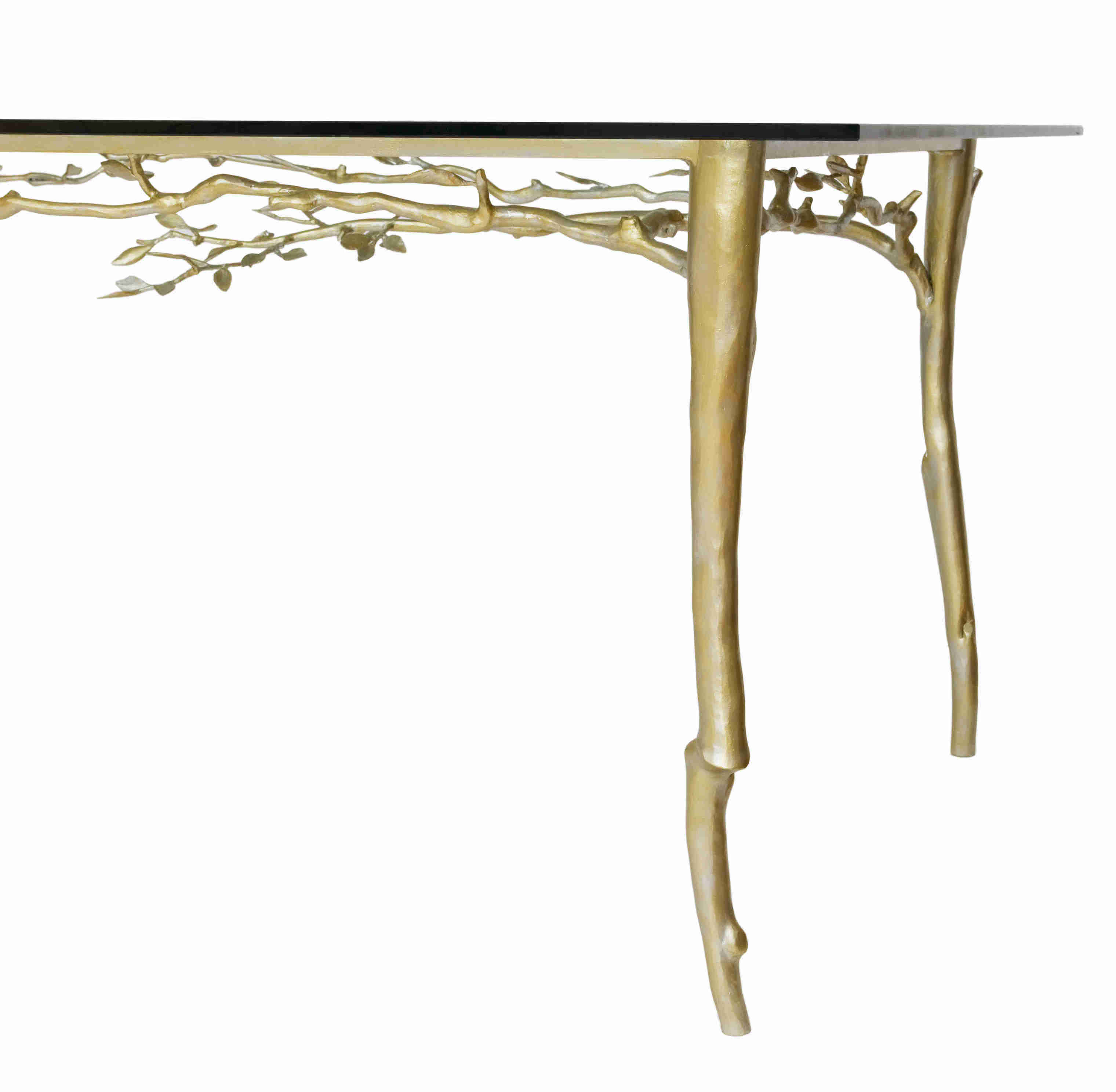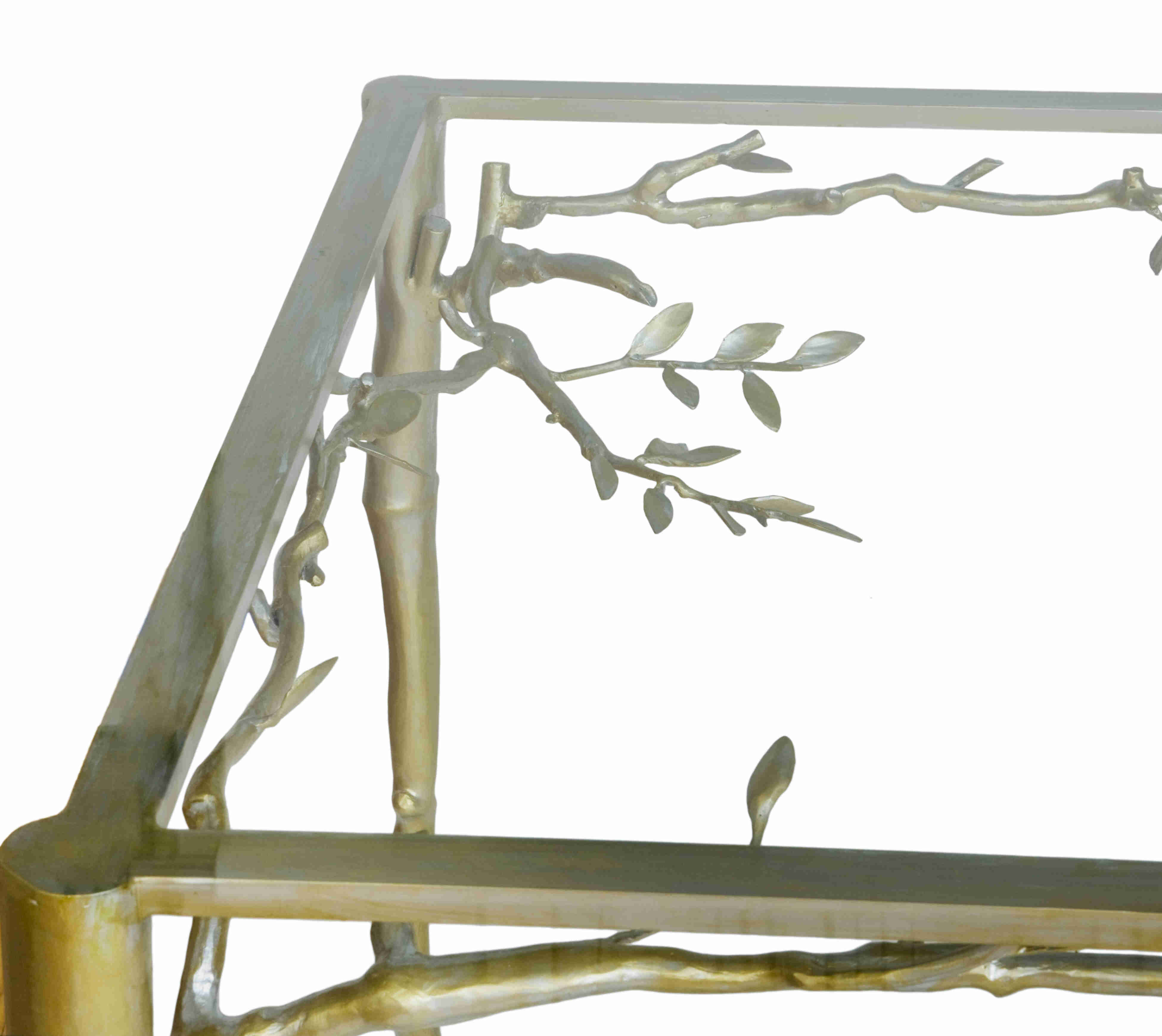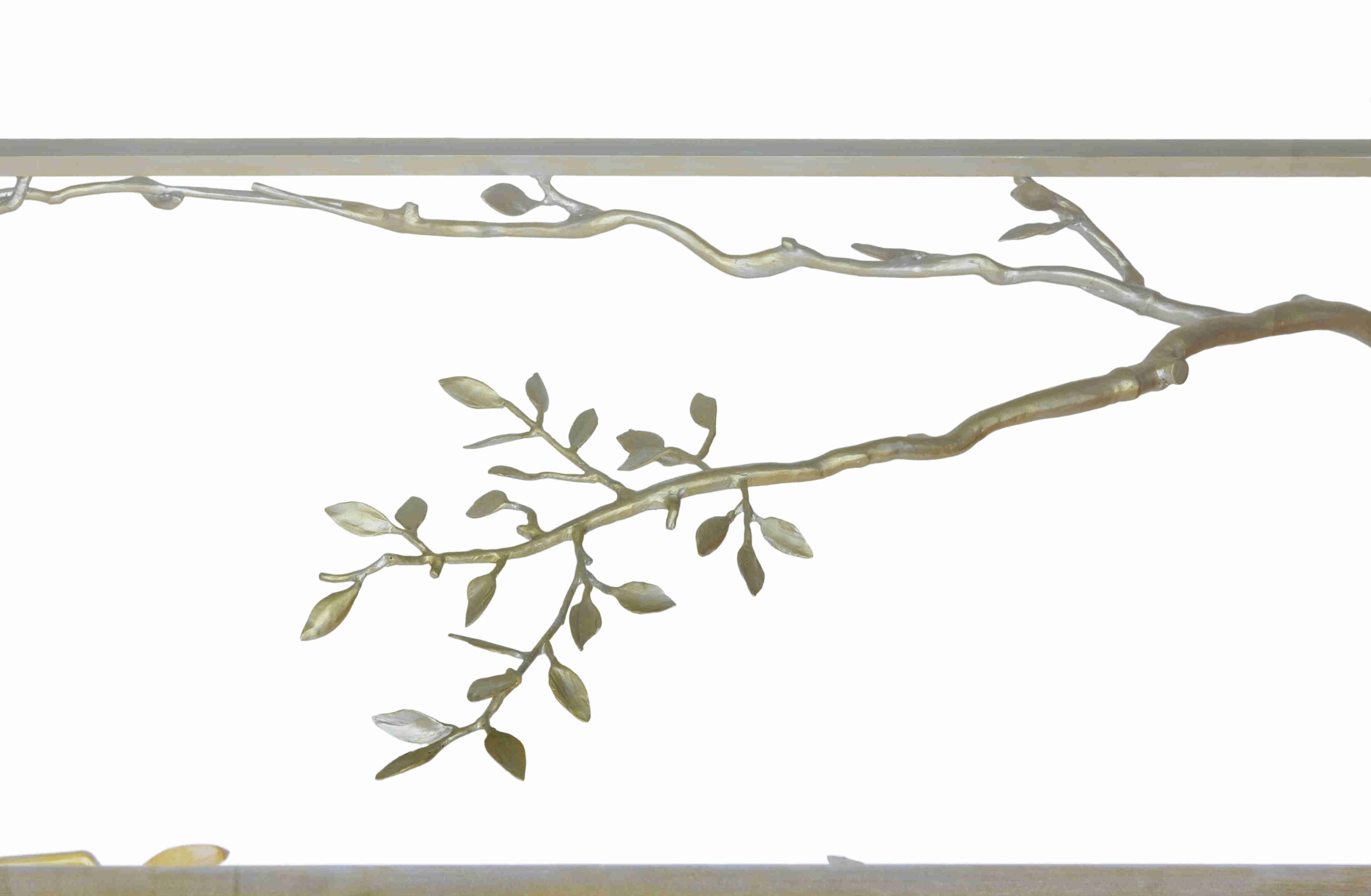 Measurements: 96" x 40"Steel with 24k. gold leaf and silver leaf, with 3/4" sapphire glass